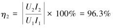 (4)当I1=2 A,U2=30 V时,计算变换器的效率。