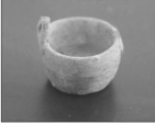 该器物通高3.1 厘米,口径3.6 厘米,腹径8 厘米,底径4.6 厘米,质量100 克。