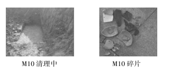 M10 简介:M10 坐西南朝东北。该墓为券顶砖室墓。墓室平面成“刀”字形,采用三顺一丁砌法,墓底按“人”字形铺排。墓长4.26 米,宽1.42 米,残高1.1 米。