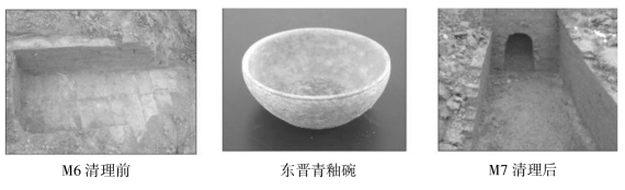 M7 简介:M7 坐西南朝东北。该墓为券顶砖室墓。墓室平面呈“刀”字形,采三顺一丁砌法,墓底按“人”字形铺排。墓长4.1 米,宽1.71 米,残高1.2 米。M7 共清理出文物4 件。该墓早期曾经被盗,出土了大量的碎片,有待后期整理。